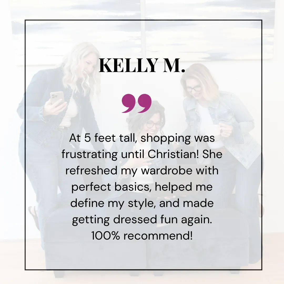 Start with a free 30-minute Style Strategy Session! We’ll chat about your lifestyle, goals, and style story and map out a personalized path forward. No pressure, just possibilities. Click here to schedule yours today.